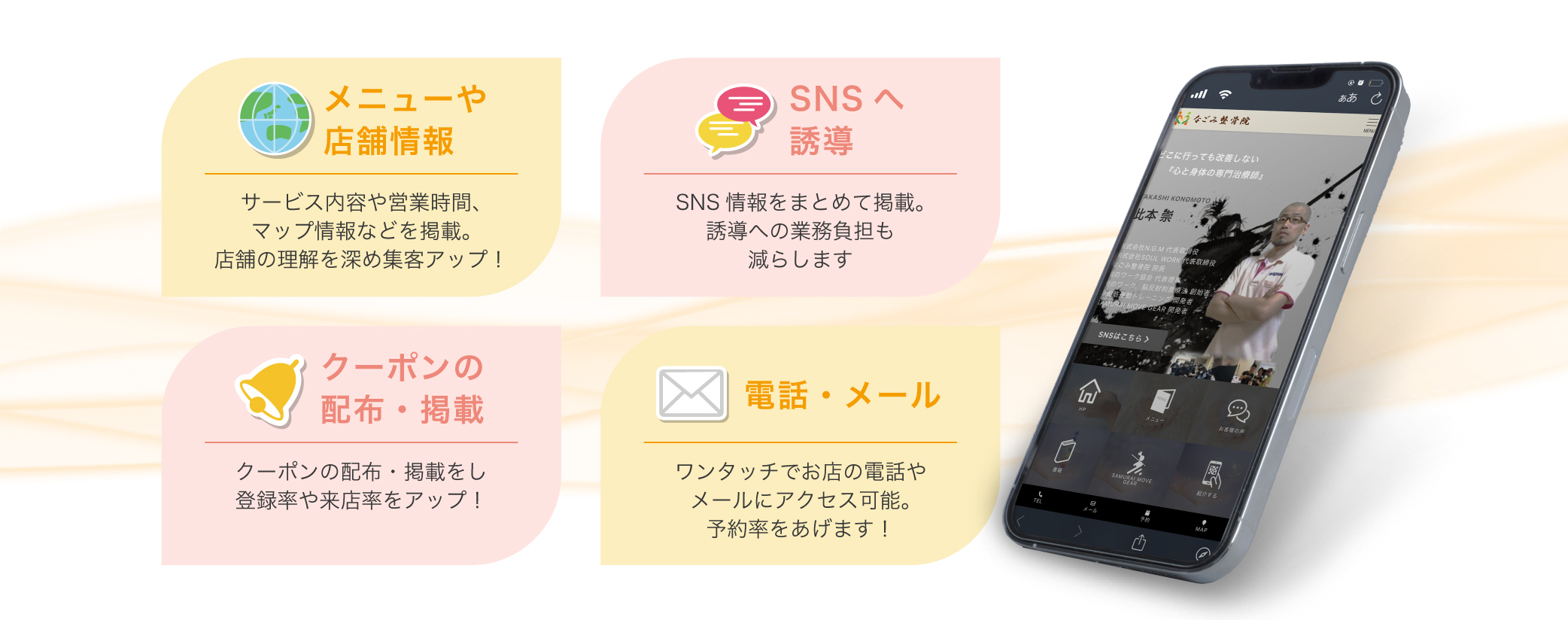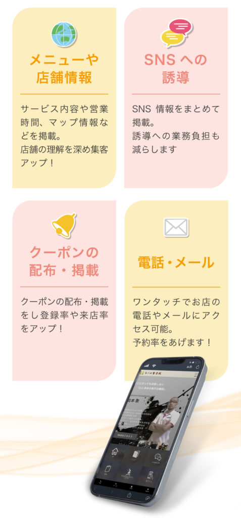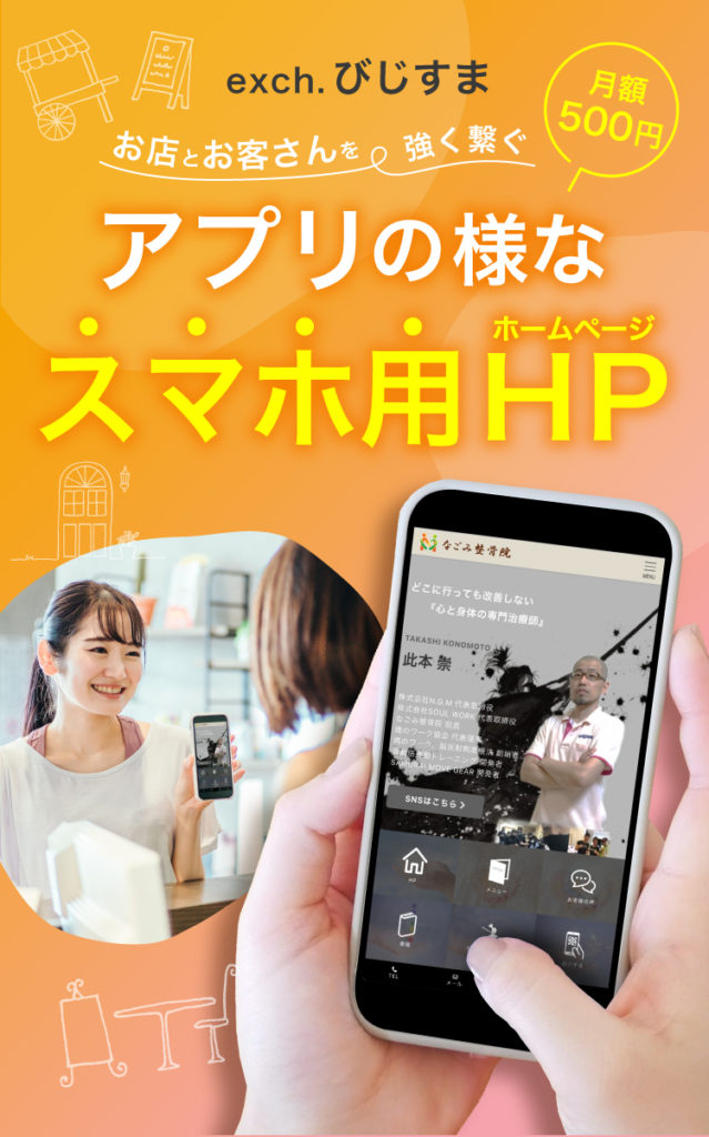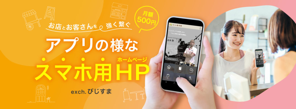 初期の製作費と月々500円の安価でスマホに特化したアプリのようなHPを持つことができます。